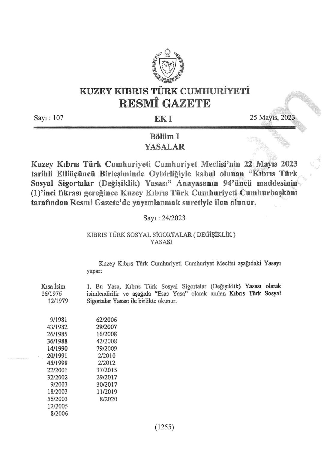 Bu Yasa 25.05.2023 Tarih ve 107 Sayı numaralı Resmi Gazetede yayınlanarak yürürlüğe girmiştir.![]()